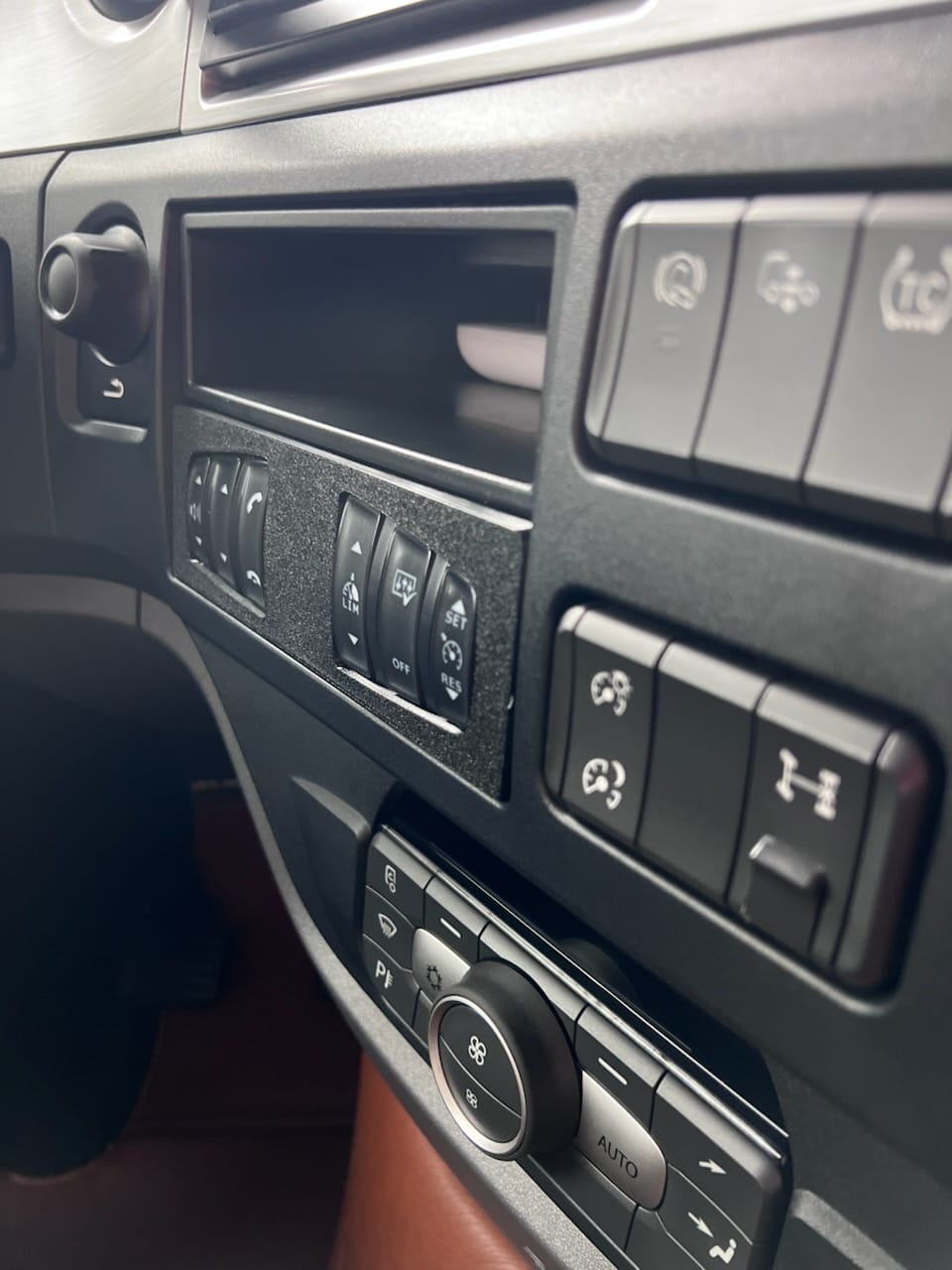 Al convertir un vehículo DAF XF 106 , suele ser necesario reubicar los botones de control que originalmente se encontraban en el panel de interruptores original . Esto permite integrar los controles en una ubicación más accesible o más adecuada para el equipo instalado.